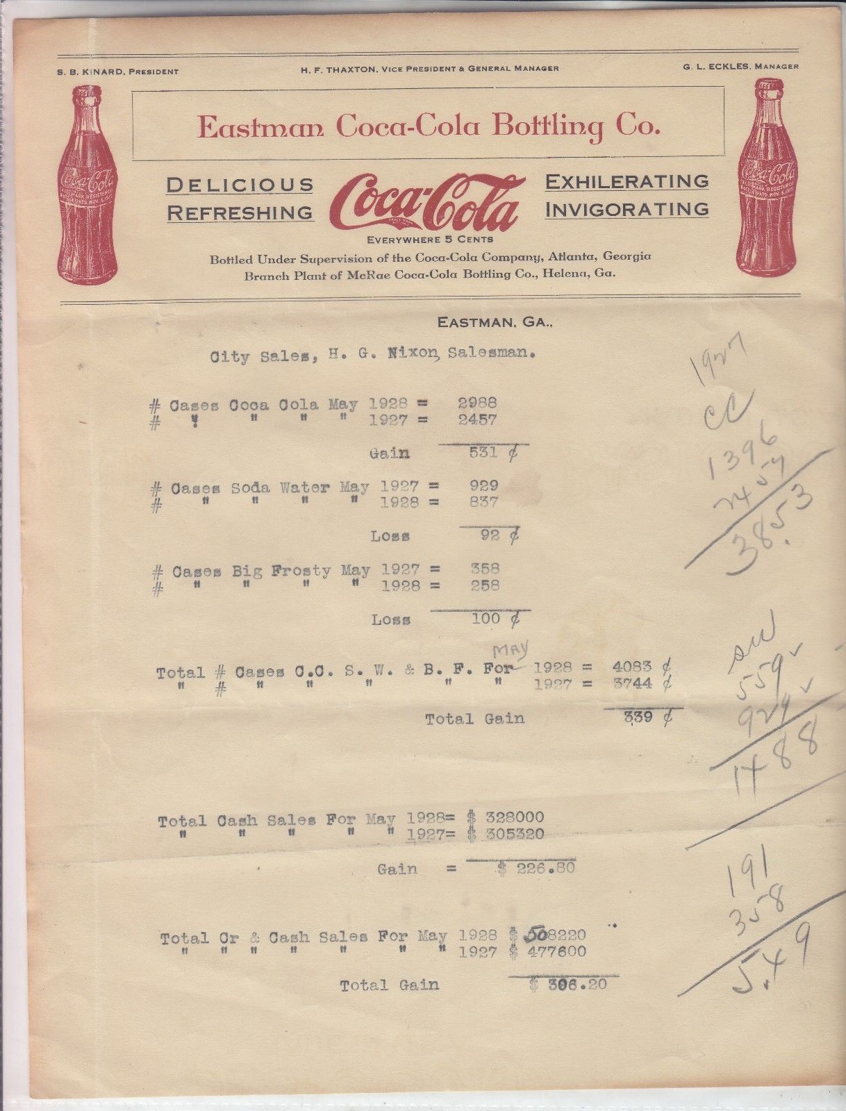 Title (ebay affiliate link): EASTMAN COCA-COLA BOTTLING CO. LETTERHEAD 1927 - 1928 PROFIT/LOSS REPORT