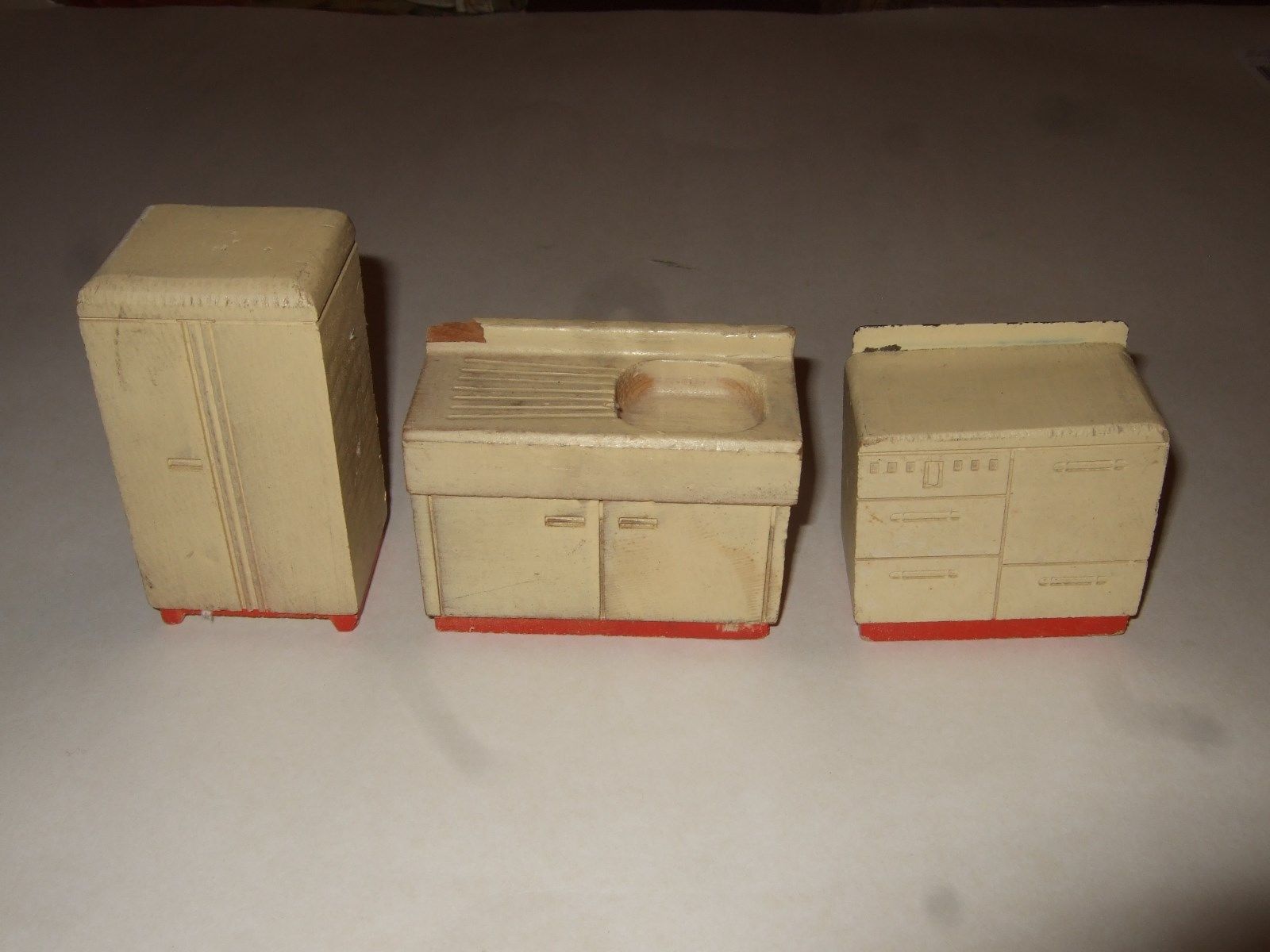 Vtg Antique Mini Miniature KITCHEN SET Wooden Dollhouse Furniture Original Paint