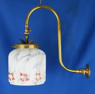 Victorian Edwardian Brass Gas Wall Bracket Lamp Inverted Mantle Light Shade