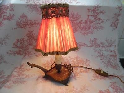 PRETTY VINTAGE FRENCH BRASS CHAMBERSTICK / BOUDOIR LAMP AND SHADE- Shabby Chic