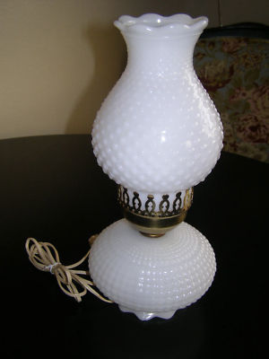 Vintage Hobnail Ruffled Milk Glass Hurricane Lamp Light