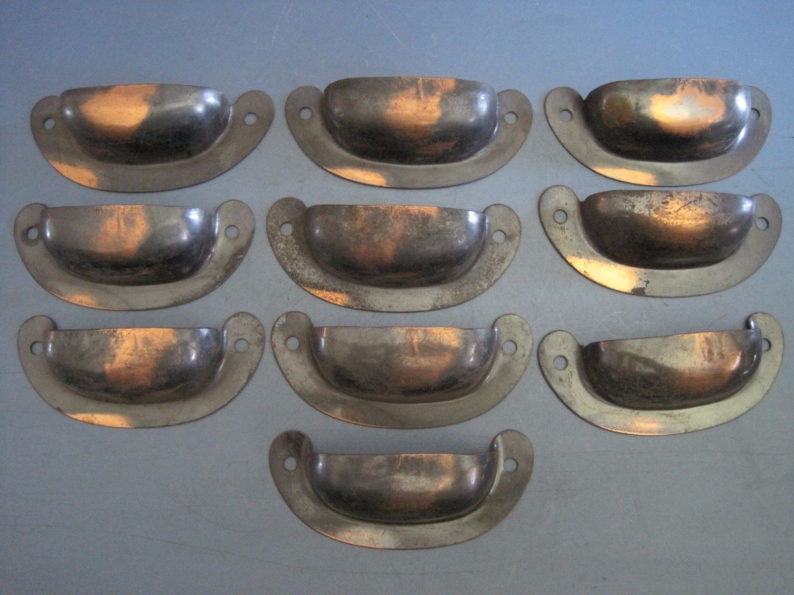 TEN VINTAGE ANTIQUE MISSION METAL JAPANNED DRAWER PULL KNOBS FURNITURE DRESSER
