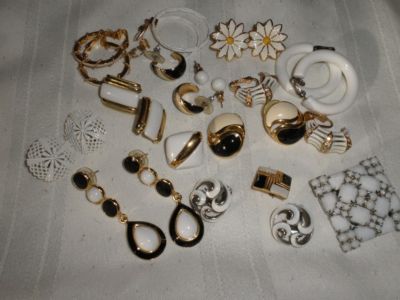 Classy Vintage Black White Jewlery Lot MILk Glass Pin