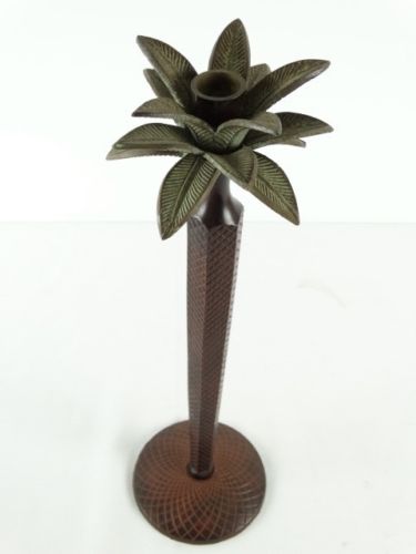 Title (ebay affiliate link): Classic Heavy Bronze Palm tree Style Candlestick tapered hexagonal column