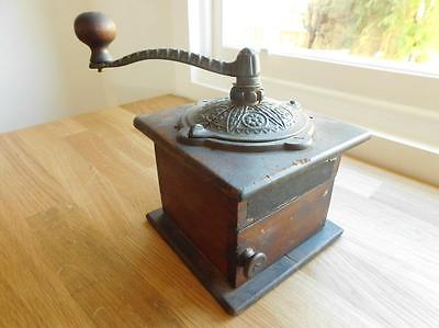 Beautiful Rustic Cast Iron & Wood Kitchen Coffee Grinder Mill 1800s