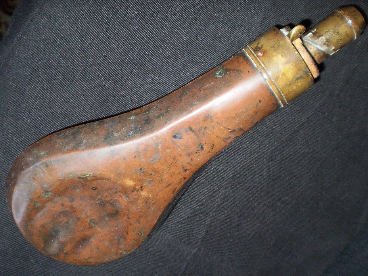 Vintage English copper & brass Hawksley Shotgun Powder Flask