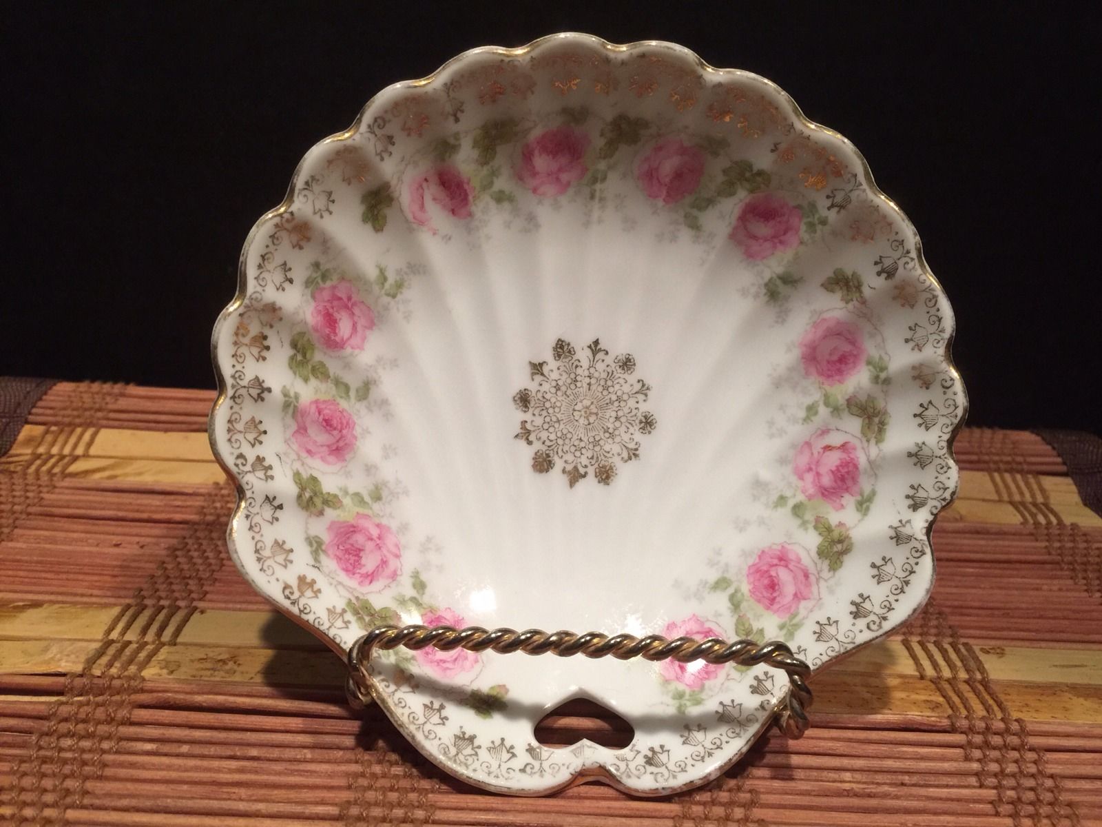 Title (ebay affiliate link): Vintage B B Germany White Porcelain Shell Bowl Pink Floral with Gold 4 7/8"