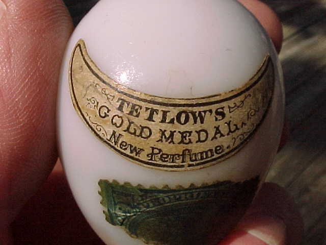 Egg Shaped Milk Glass TETLOW''S Gold Medal New Perfume Bottle