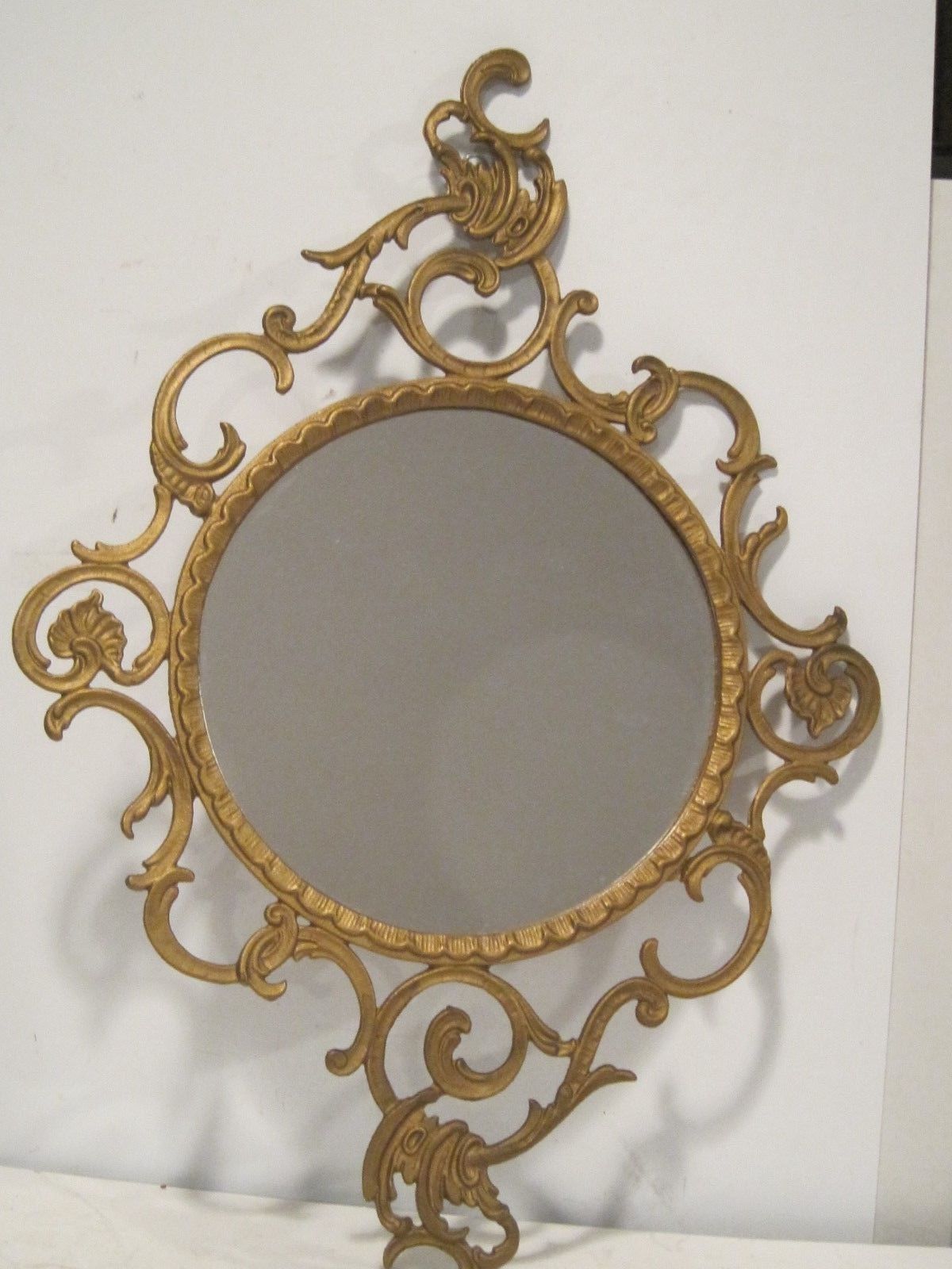 Vintage Antique Iron Art JM Gold Leaf hanging Mirror