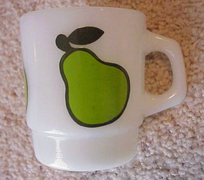 Vintage Fire King Milk Glass Mug GREEN PEAR FRUIT