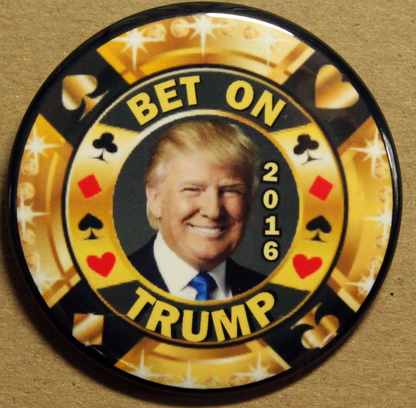 DONALD TRUMP 2016 POLITICAL CAMPAIGN BUTTON - BET ON TRUMP