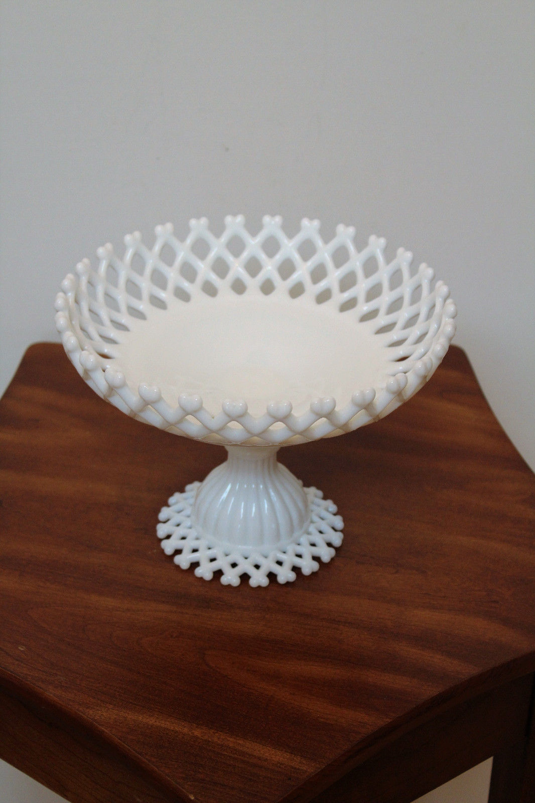 Title (ebay affiliate link): WESTMORELAND MILK GLASS LATTICE EDGE LARGE PEDESTAL COMPOTE / BOWL