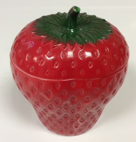 Title (ebay affiliate link): Vintage Hazel Atlas Red Strawberry Milk Glass Sugar Bowl / Jelly & Jam Jar NICE