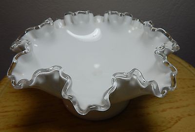 Vintage Fenton Dish Milk Glass Pedestal Silvercrest Ruffle Bowl