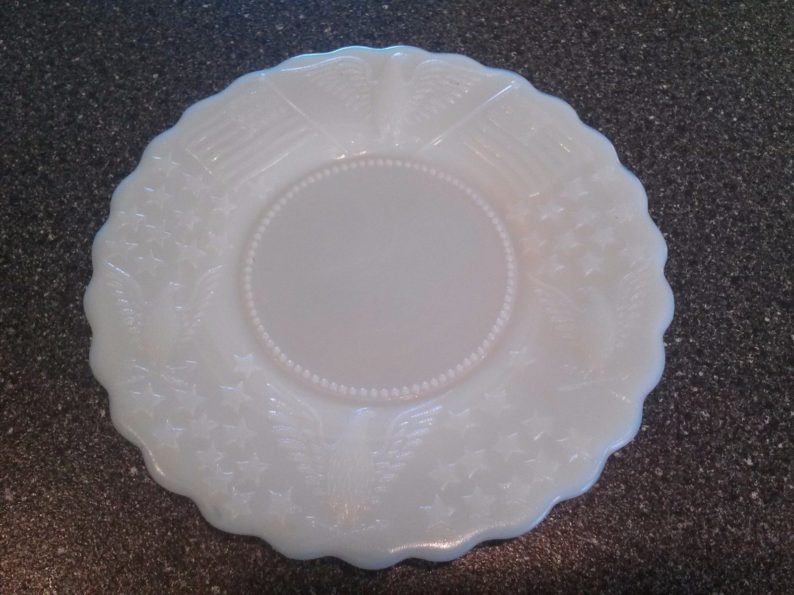 Title (ebay affiliate link): Antique milk glass patriotic flag & eagle plate with 13 star flags 7 1/2"