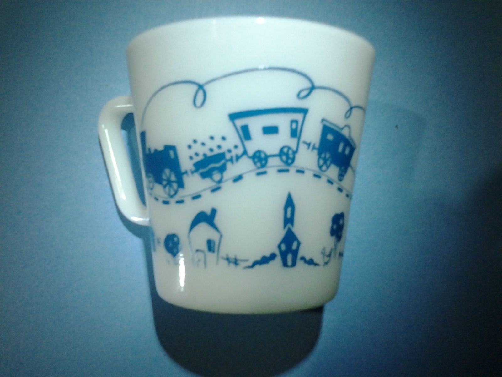 Pyrex Childrens Milk Glass Mug Choo Choo Train