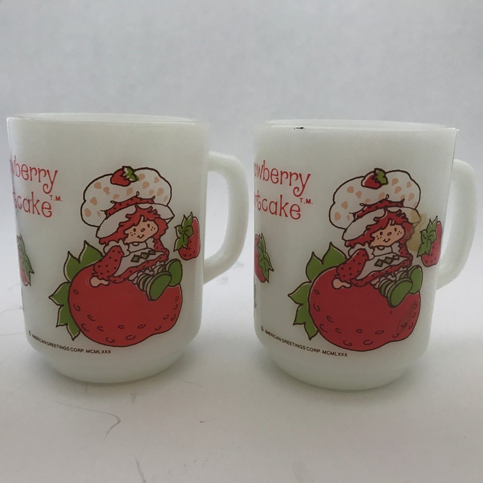 Strawberry Shortcake Milk Glass Mug Pair Set Of 2 Anchor Hocking 1980