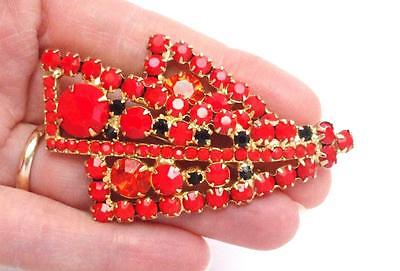 UNIQUE VINTAGE PIN W/RED MILK GLASS, ORANGE AND BLACK RHINESTONES PRONG SET STNS