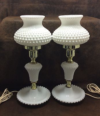 Title (ebay affiliate link): 2 Vintage hobnail lamps PAIR white milkglass table desk vanity boudoir 14" Tall