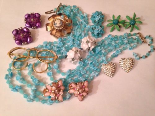 Title (ebay affiliate link): Vintage Costume Designer Jewelry Lot Milk Glass Rhinestone Cameo 1960''s Japan +