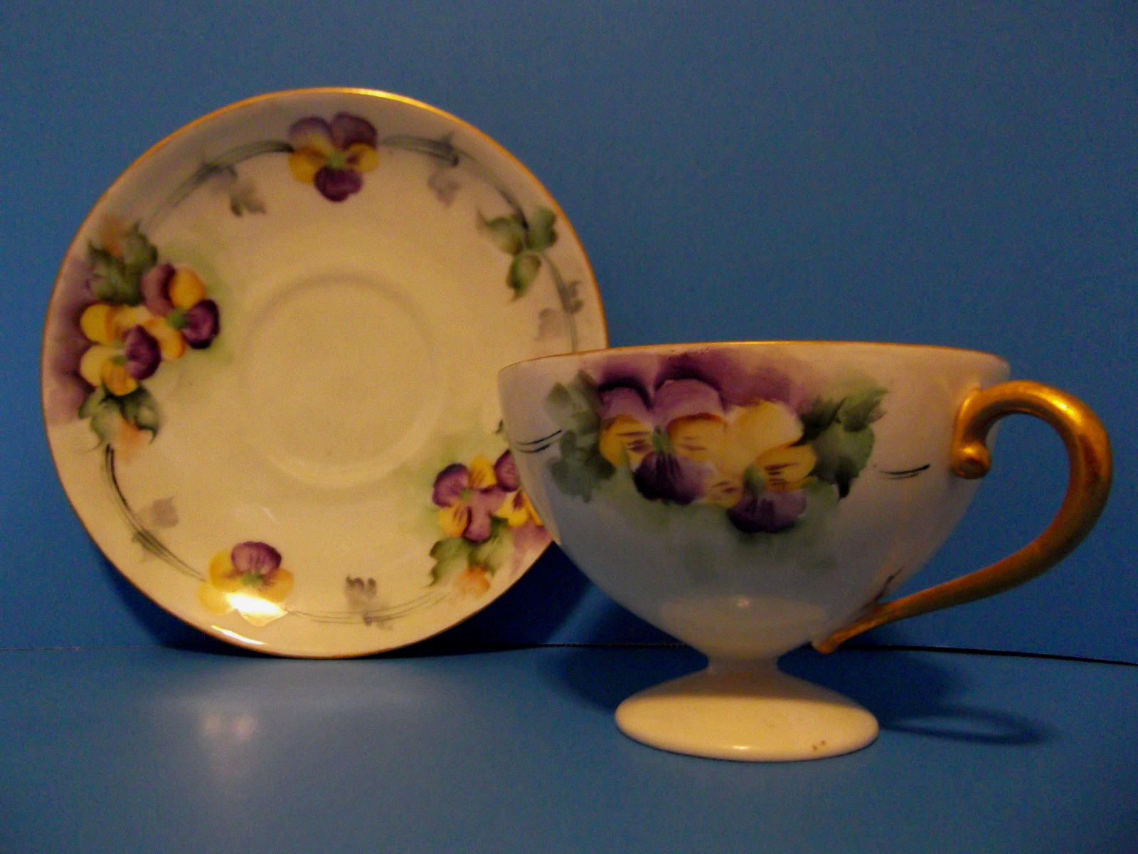 Royal Rudolstadt Purple Floral Footed Iridiscent Tea cup & Saucer