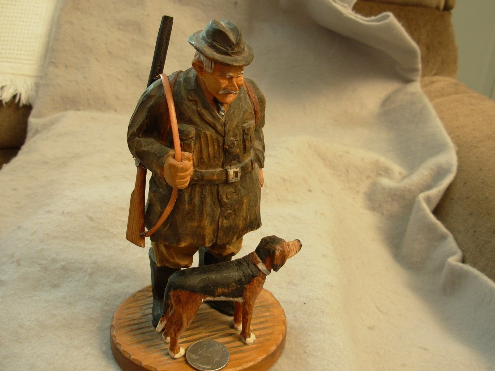 Excellent Antique German Wood Carving Old Hunter & Dog
