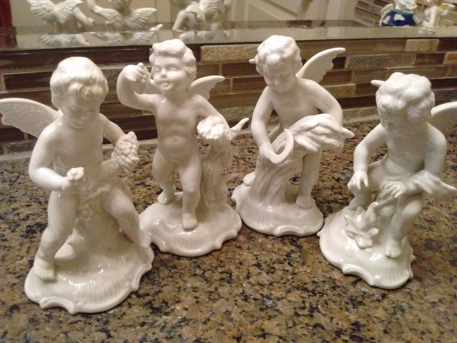 Title (ebay affiliate link): FOUR SEASONS Angel Cherub Figurine Set Blanc de Chine Germany Dresden Crown