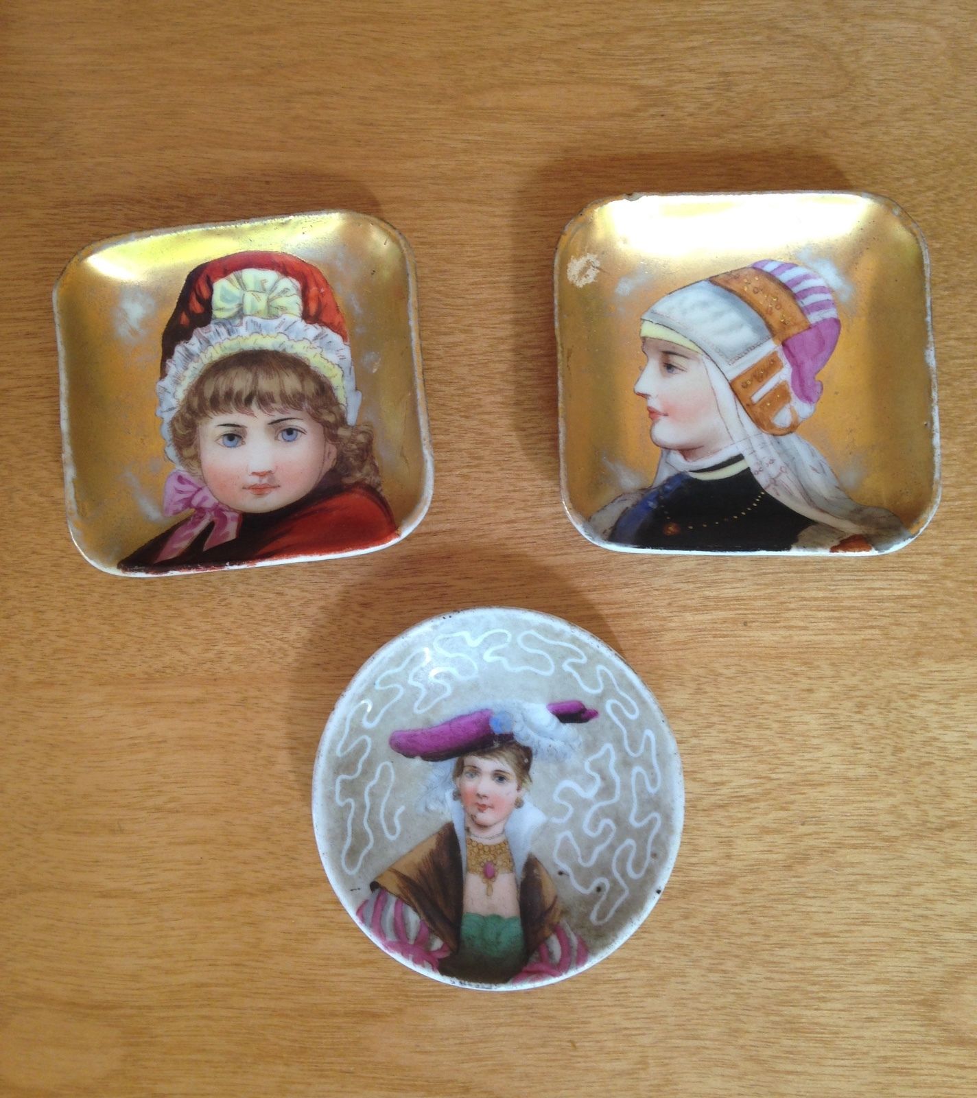 Title (ebay affiliate link): Lot of Three Antique Vintage Hand Painted Miniature Porcelain Plate Portraits