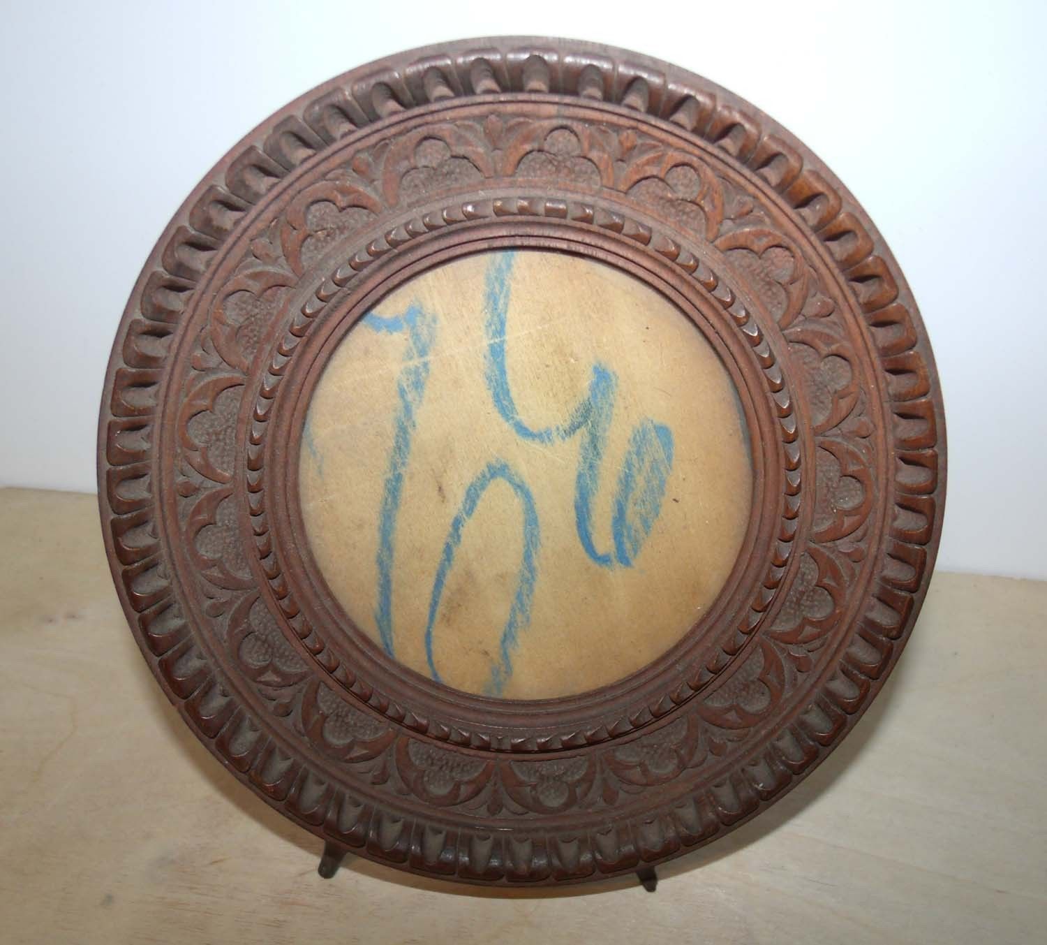 Antique Hand-Carved Circular Wooden Frame Intricate Design