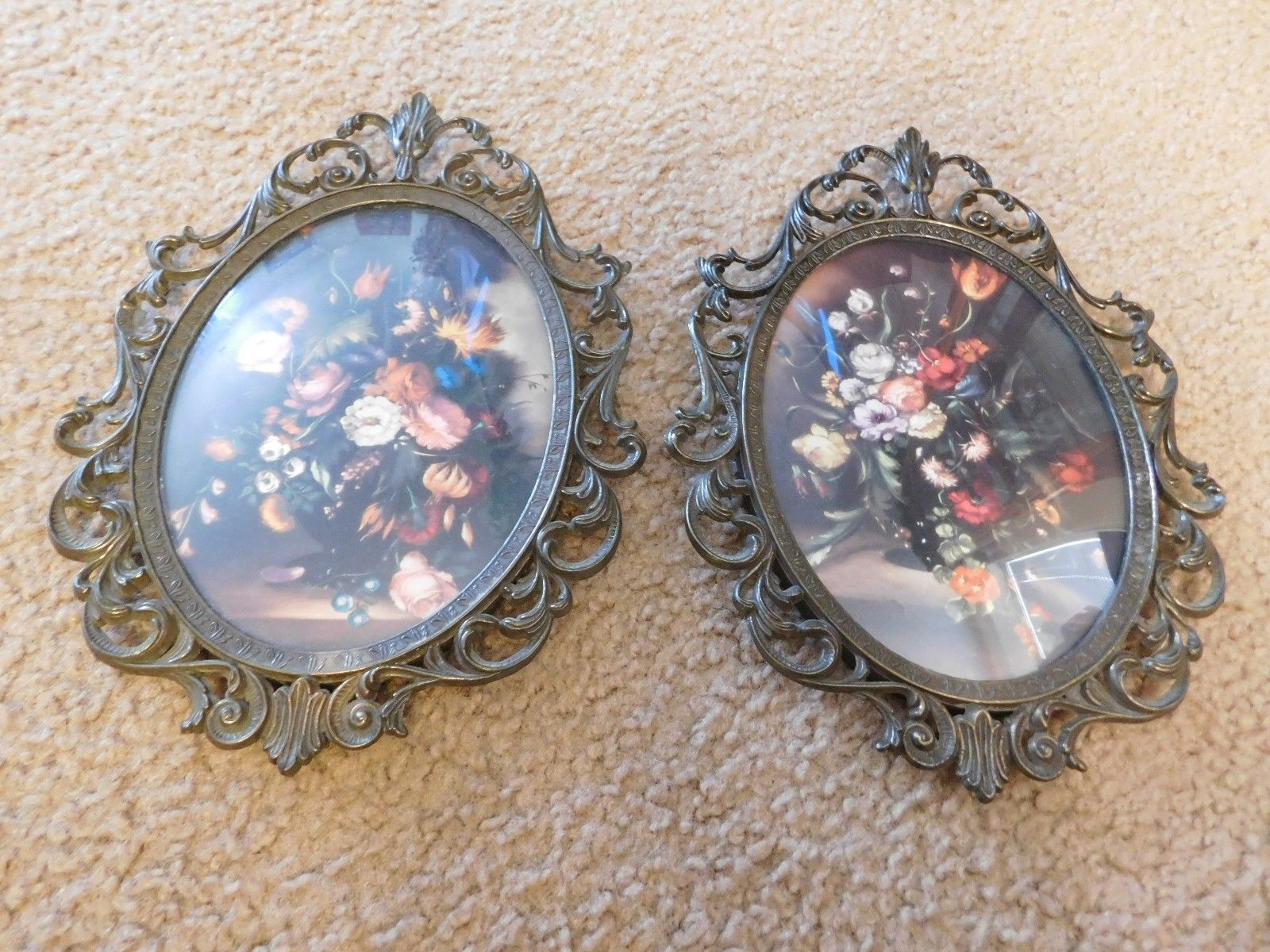 Title (ebay affiliate link): Pair of Antique Oval brass Metal Bubble Convex Glass Picture Frame Italy floral