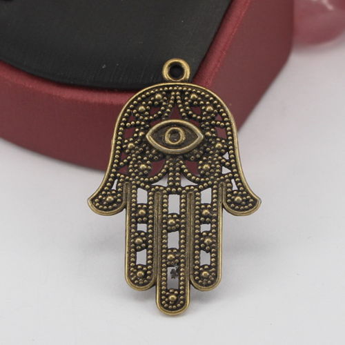 Title (ebay affiliate link): 5pcs 42x29mm Antique bronze Hamsa hand Charms Pendants Jewelry Making