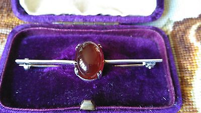 Beautiful Antique Solid Silver Art Deco Cherry Amber Large Bar Brooch Pin