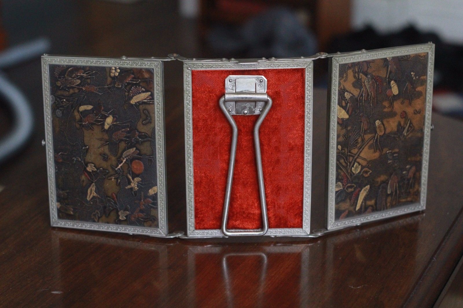Title (ebay affiliate link): 3 Way Victorian Beveled Glass Vanity Mirror, Embossed Leather, 1800''s, VHTF!!