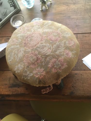 Antique Needlepoint foot Stool Old