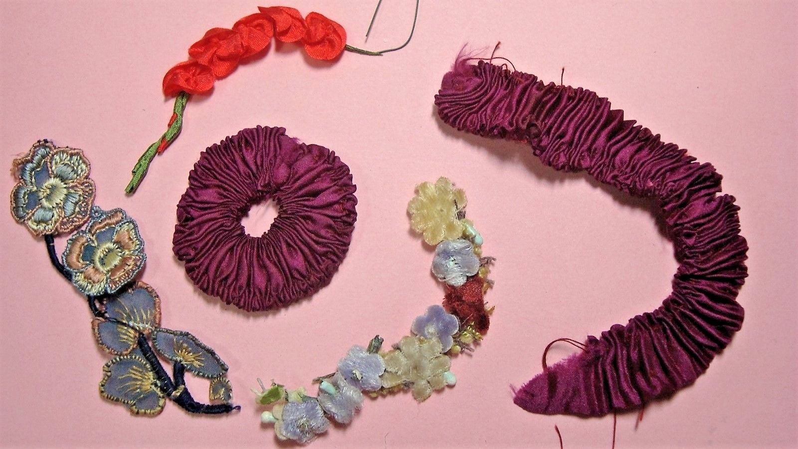 ANTIQUE / VINTAGE TRIMS & FLOWERS FOR FRENCH FASHION / BISQUE DOLLS SEWING