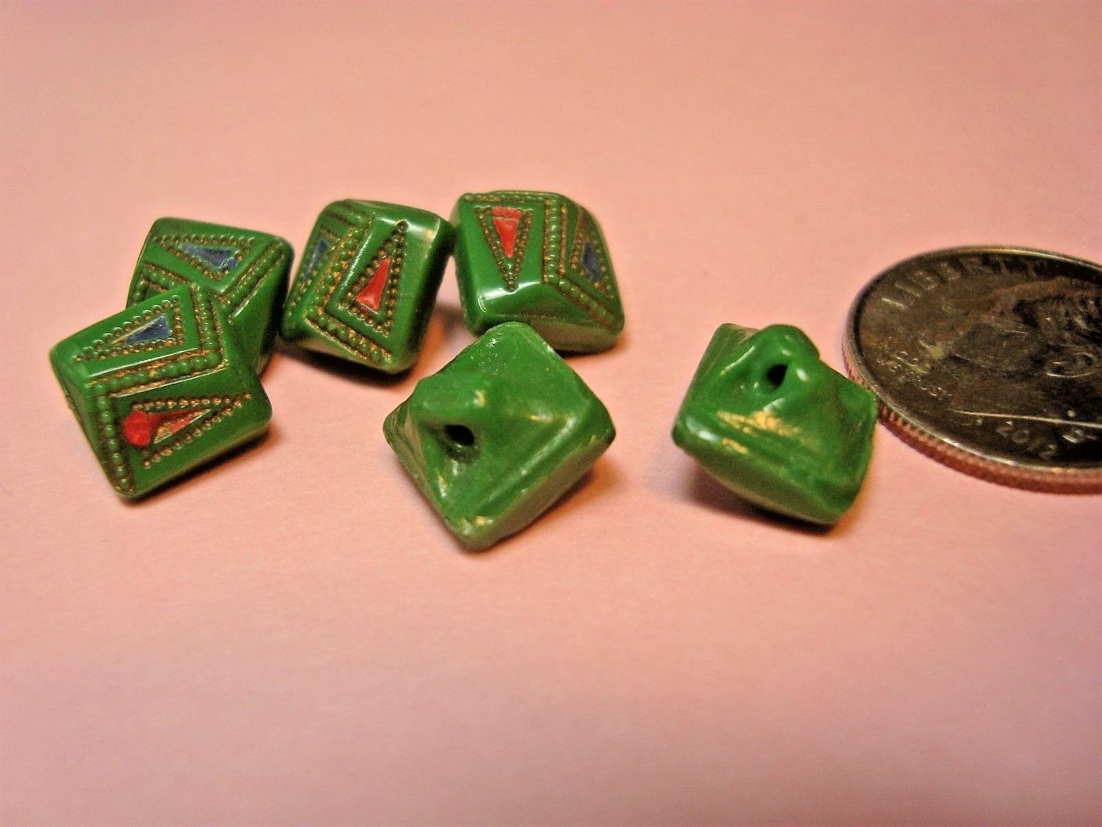 ANTIQUE SQUARE GREEN GLASS BUTTONS FOR FRENCH FASHION / BISQUE DOLLS SEWING