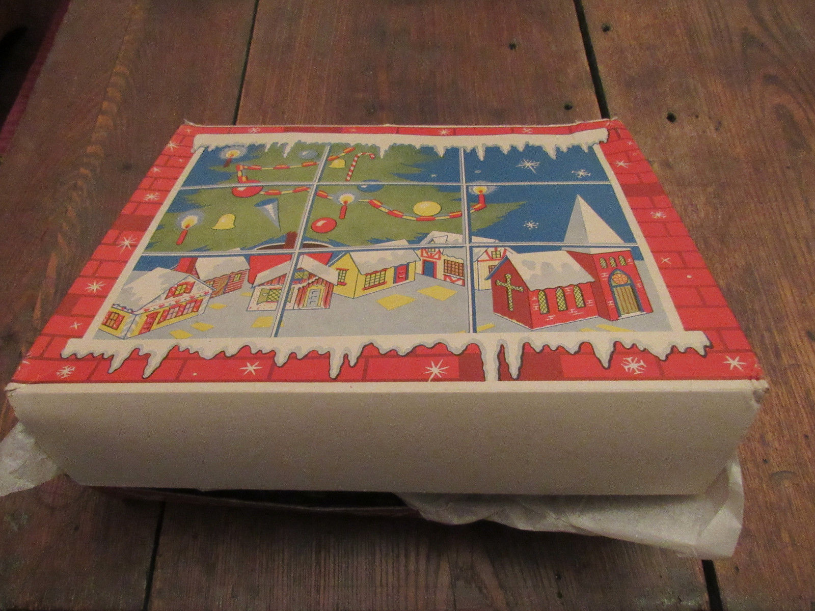 VINTAGE XMAS VILLAGE HAPPITIME SEARS ROEBUCK CHRISTMAS DISPLAY TREE SLED HOUSE