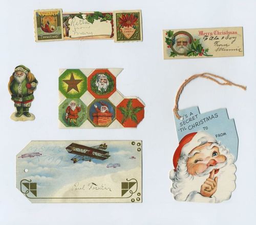 Title (ebay affiliate link): Small Lot Vintage Christmas Holiday Gift Tags Paper Ephemera Santa Claus cv8055