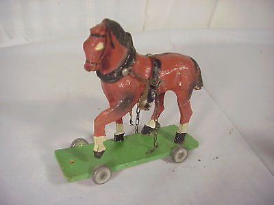 ANTIQUE CHRISTMAS PUTZ PULL TOY HORSE WITH WOOD LEGS #41
