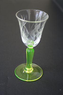 Vintage Vaseline Uranium Depression Glass Etched Cordial Liqueur