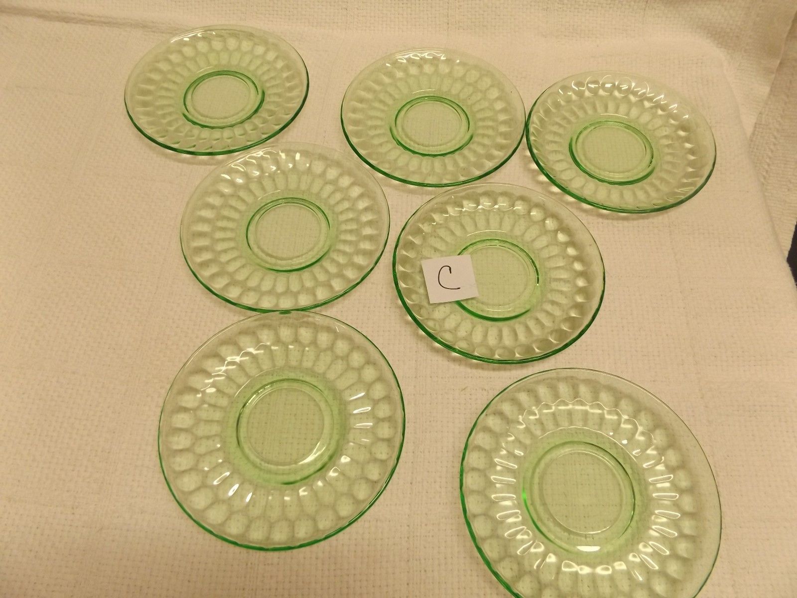 7 Green Depression Glass Saucers / dessert plates Optic Lot C