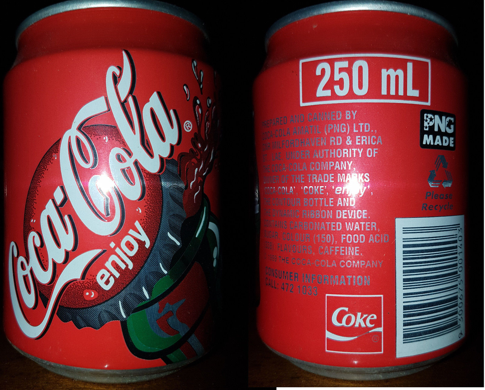 RARE COCA COLA CAN DOSE LATA FROM PAPUA NEW GUINEA - BOTTLE CAP 250ml