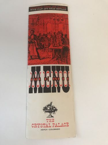 Title (ebay affiliate link): The Crystal Palace Aspen, Colorado Menu Broadway Songs and Patter Vintage