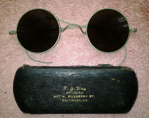Title (ebay affiliate link): Antique round green lens sun glasses metal frame orginal hard case Baltimore Md.