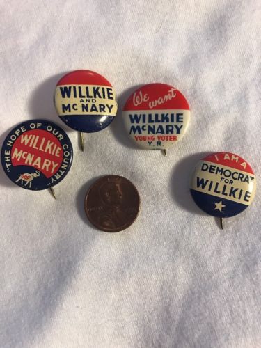 Title (ebay affiliate link): 4 Authentic Wendell Willkie Campaign Pins 1940''s