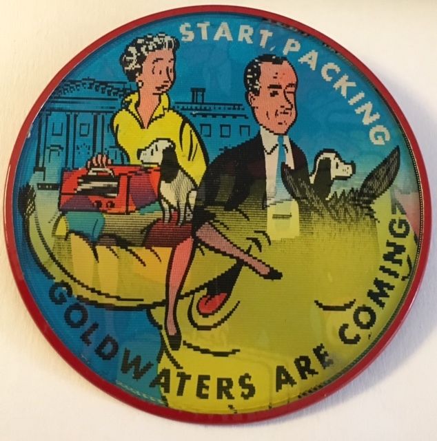 Title (ebay affiliate link): 3" LBJ and Lady Bird "Start Packing: The Goldwaters Are Coming" Flasher Button