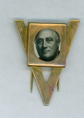 Vintage 1944 President Franklin Roosevelt Political Campaign V-Shaped Pinback