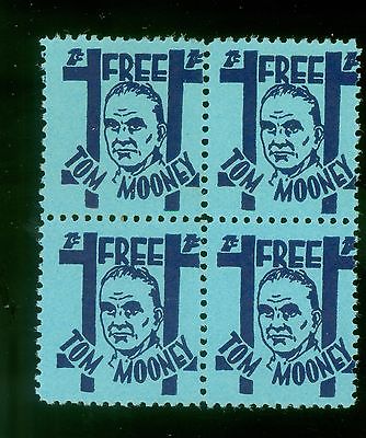 4 Vintage 1930s Free Tom Mooney Defense Fund Block of Contribution Stamps