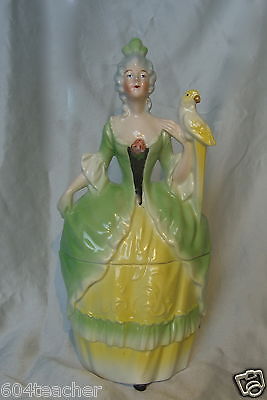 ANTIQUE GERMAN LADY/PARROT*TRINKET/POWDER/BOX/POT/JAR*GERMANY*BAVARIA*HALF DOLL
