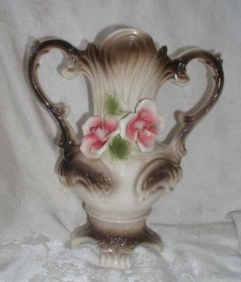 Vintage Lg Capodimonte Handled Vase*Pink Roses*Italy